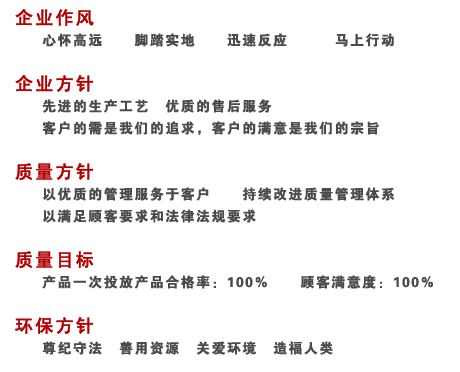 我企业在激烈的市场竞争中,凭着优质的产品、完善的服务,赢得了广大客户的信赖,市场日益扩大。我们视产品质量为企业的生命,建立了生产、销售、安装、维修的质量保证体系,提高了市场竞争能力,适应了国际经济一体化的需求,具备了良好的企业形象和信誉。